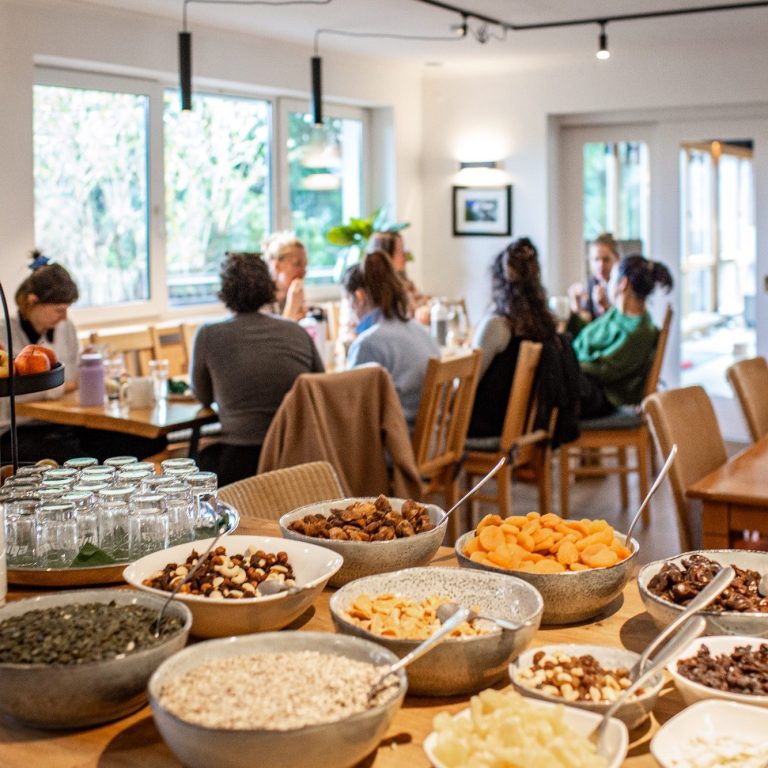 In der STUUB wird Wert auf lokale Produkte gelegt. Du wirst durch ein reichhaltiges vegan/vegetarisches Frühstücksbuffet und Abendessen verpflegt, zwischendurch gibt es nährende Snacks und jederzeit stehen kalte und warme Getränke für dich bereit.